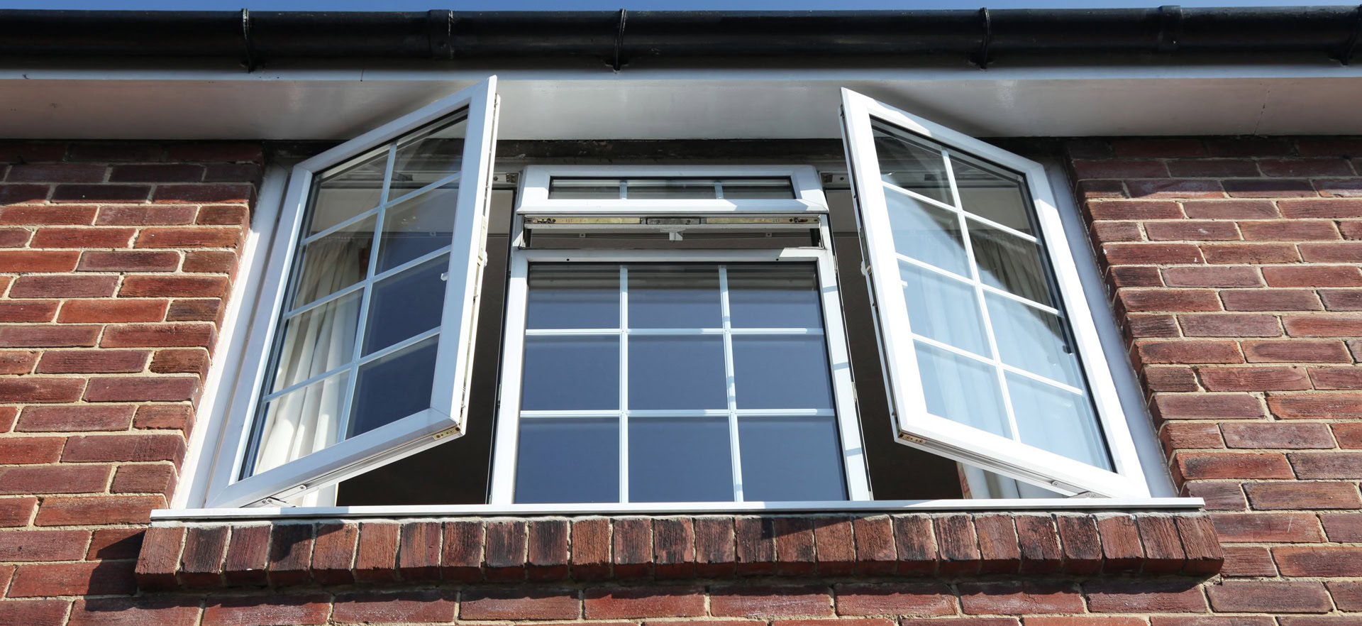 Casement windows are hinged at the side and swing outward, typically operated with a smooth crank mechanism.